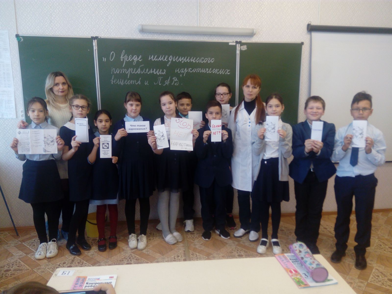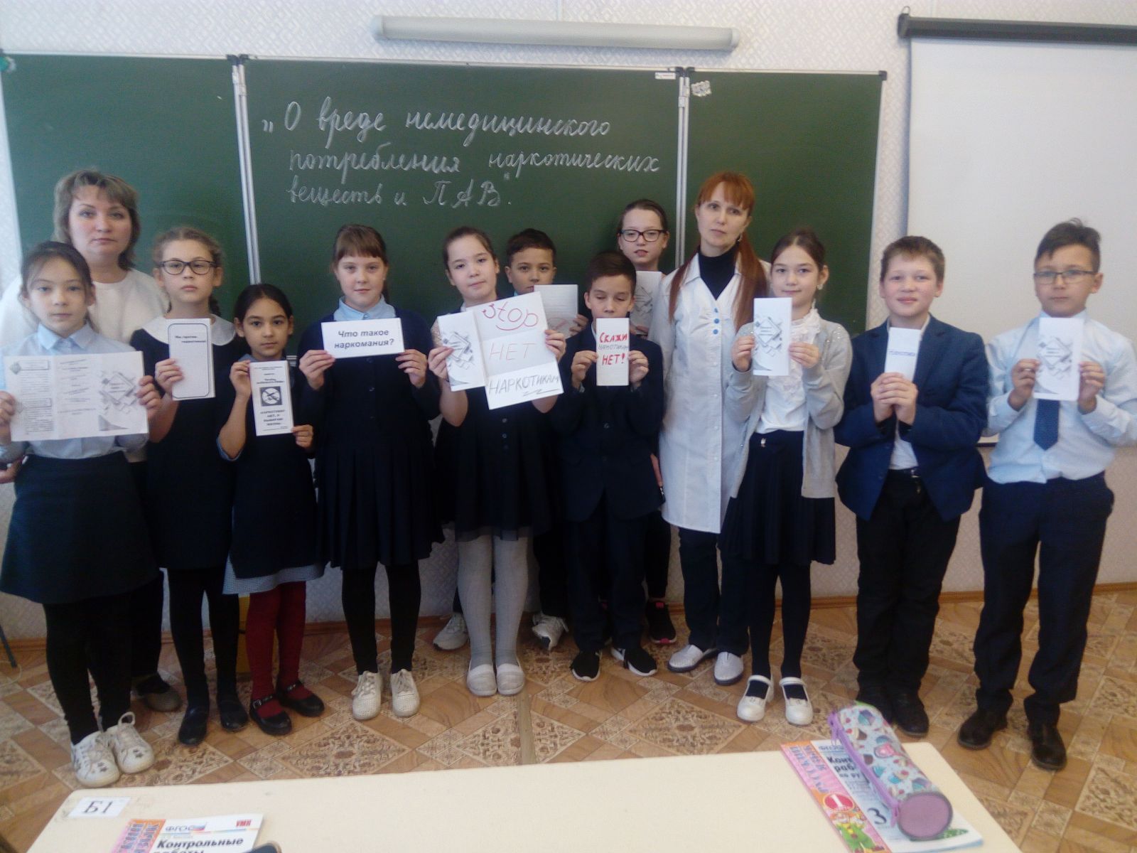 14 ноября активистами школьного отряда правонарушений «Форпост» (руководитель Димиева Э.А.) была проведена беседа о вреде немедицинского потребления наркотиков. В данном мероприятии приняли участие учащиеся 4а класс, школьная медсестра и представитель клуба «Ровесник». Проблема употребления наркотиков очень актуальна в наши дни. Ежегодно употребление наркотиков становиться причиной смерти многих тысяч людей. В первую очередь под угрозу ставится подрастающее поколение: дети, подростки, молодежь.