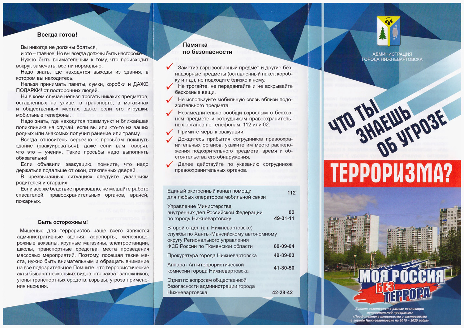 Опубликовано: 12.02.202012.02.2020 г в нашей школе было проведено профилактическое мероприятие (педагог-организатор Димиева Э.А), в ходе которого были подготовлены и распространены памятки среди учащихся и родителей, а также информационные буклеты «Терроризм – угроза обществу», «Что такое терроризм» по противодействию экстремизма и терроризма