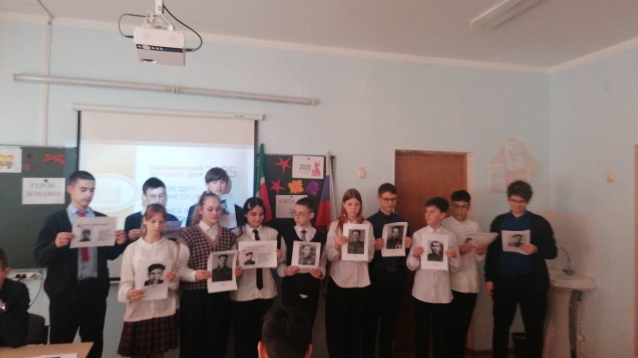 В соответствии с графиком Управление образования о проведении парламентских уроков, приуроченных к объявленному в Республике Татарстан Году защитника Отечества и 80-летию Победы в Великой Отечественной войне, на тему «Святое дело – Родине служить!» («Ватанга хезмәт итү – изге бурыч!»), 24 февраля состоялся урок-дискуссия на тему «Героические страницы нашей истории».