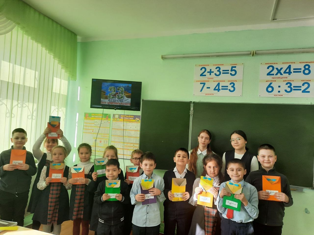 В канун праздника, Дня защитника Отечества, советник директора по воспитанию и взаимодействию с детскими общественными объединениями Зарипова Э.И. совместно с активистами школьного ученического самоуправления и Движение первых провели для младшеклассников Орлят России мастер-класс по созданию открыток. На мастер-классе дети узнали о значении Дня защитника Отечества и о том, как важно ценить и уважать тех, кто стоит на страже нашей безопасности.