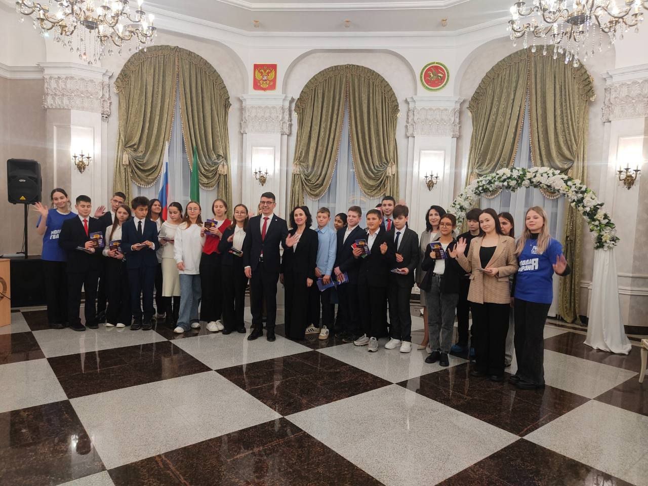 От Партии «Единая Россия» и молодёжной организации «Движение первых» ребятам были вручены сувениры и брошюры - «Конституция Российской Федерации».