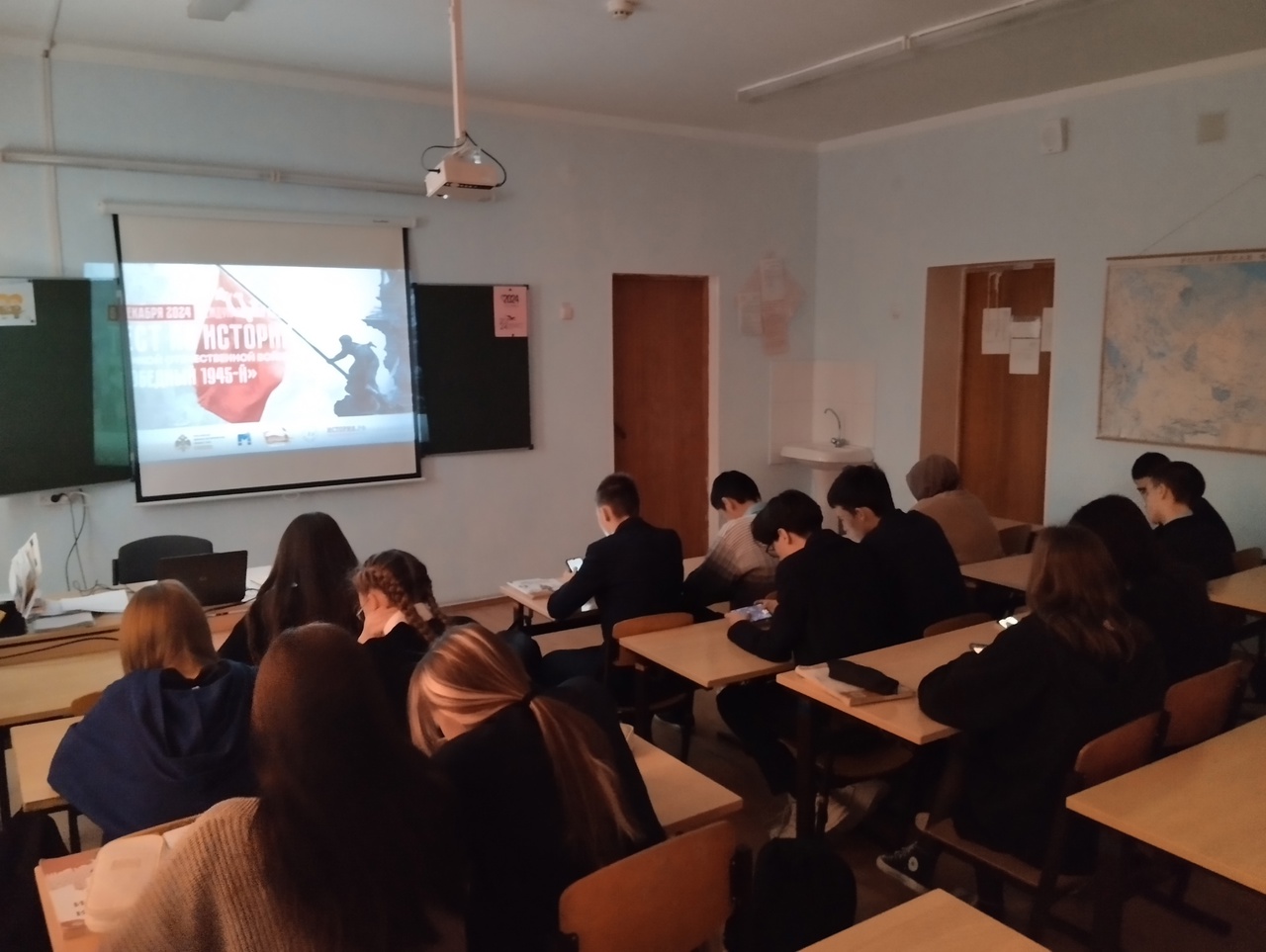 Учащиеся 9 класса стали участниками международной акции «Тест по истории Великой Отечественной войны»! В онлайн формате они ответили на 40 тестовых вопросов, посвящённых событиям Победного 1945года.