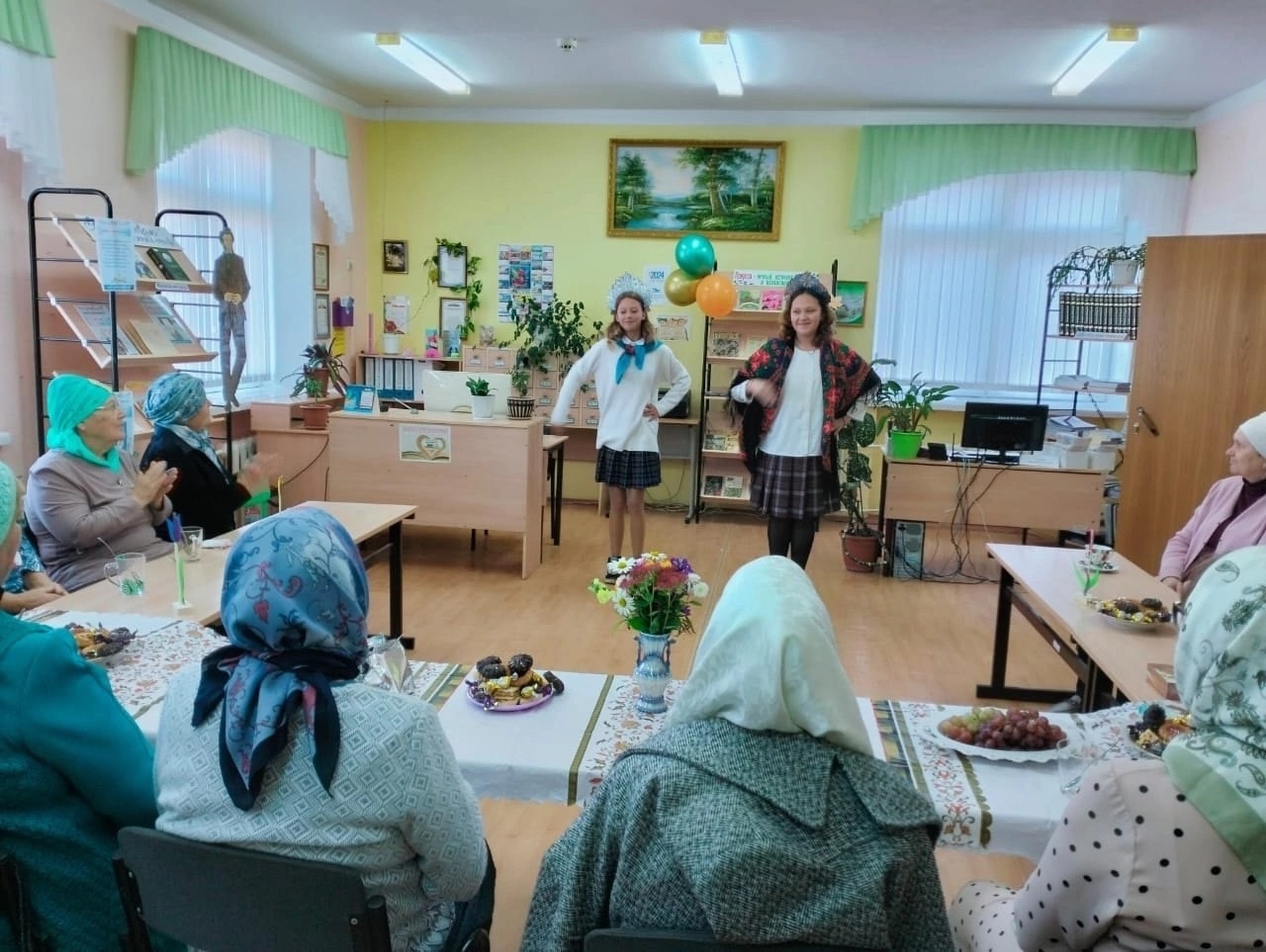 1 октября «СОШ №13» Зарипова Э.И. советник директора по воспитанию и взаимодействию с детскими общественными объединениями, совместно с классными руководителями Макаровой Е.В., Грачевой Л.Ф., Киямовой С.Н. и с учащимися 2, 5, 6-го класса посетили железнодорожный клуб, ребята вручили всем открытки которую сделали сами, поздравляли стихами, песнями. Пожелали здоровья, тепла, любви близких людей.