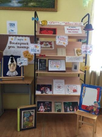 В библиотеке нашей школы «СОШ №13» оформлена тематическая книжная выставка к «Всемирному дню театра». На выставке представлены книги о театре, театральном искусстве, истории театра, биографии известных актеров и режиссеров.