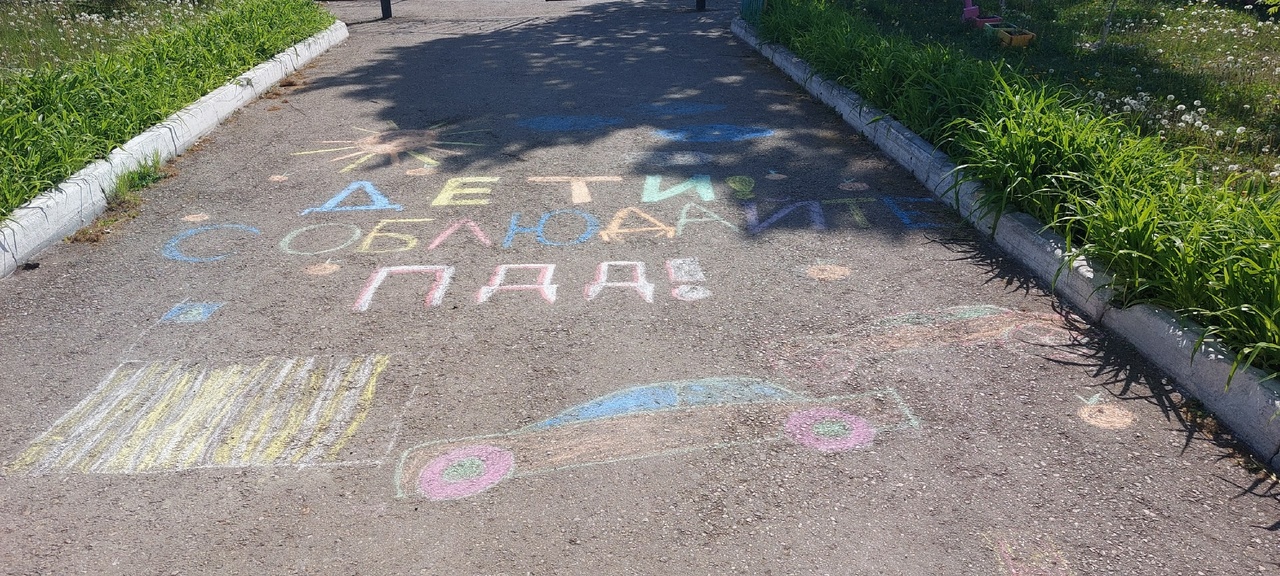 В рамках акции "Внимание – дети!". Учащиеся 6 класса нарисовали яркие и красочные рисунки на асфальте. При помощи цветных мелков и фантазии ребята выразили свое отношение к безопасному поведению на дороге. Они рисовали различные дорожные ситуации на асфальте, и уже через несколько минут школьная площадка покрылась множеством красочных изображений. Это были дорожные знаки, светофоры, пешеходы переходящие проезжую часть, пешеходные переходы и т.д. Теперь школьники будут еще долгое время любоваться яркими рисунками на асфальте и неоднократно задумаются о важности соблюдения правил дорожного движения.
