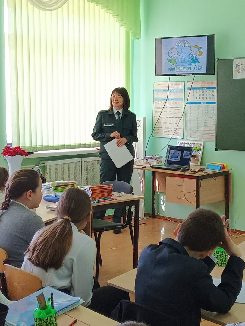 Для 3 и 4 классов прошла беседа на экологическую тему "Чистый город начинается с тебя" с участием сотрудника Министерства Экологии РТ Яковлевой Р. Н.