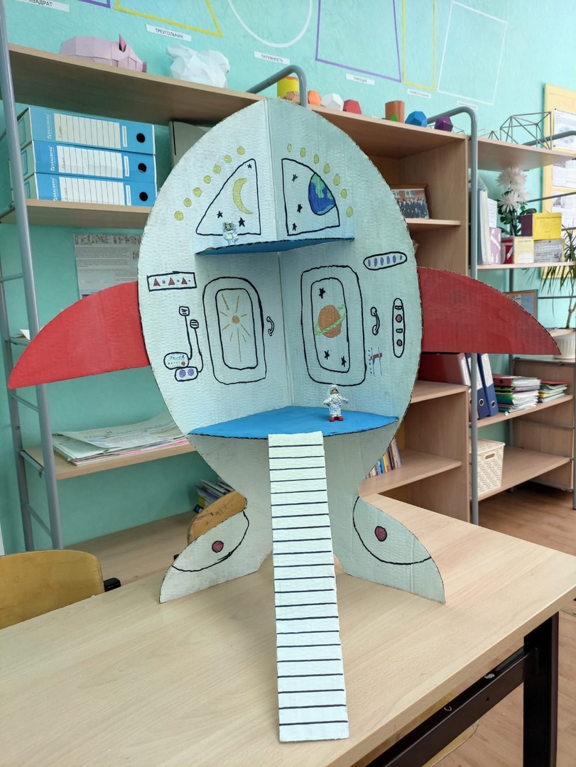 В 1 день 10 апреля, учителем математики и физики Риммой Габдрашитовной в 5 классе было проведено внеклассное мероприятие "История освоения космоса" в рамках которого обучающиеся изготовили макет ракеты.