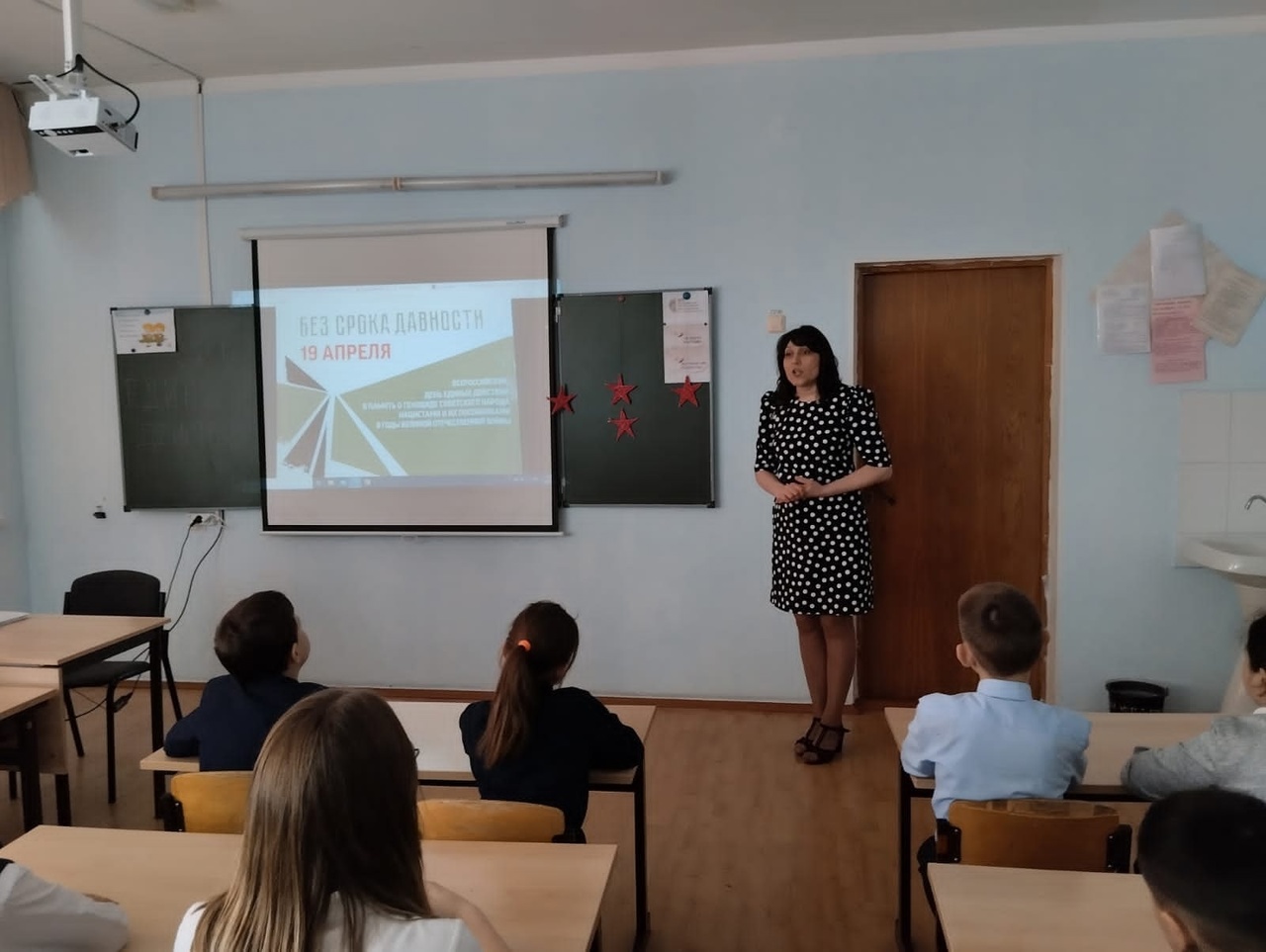 19 апреля 2023 года в рамках Всероссийского Дня единых действий прошел урок «Без срока давности» в память о геноциде советского народа нацистами и их пособниками в годы Великой Отечественной войны.