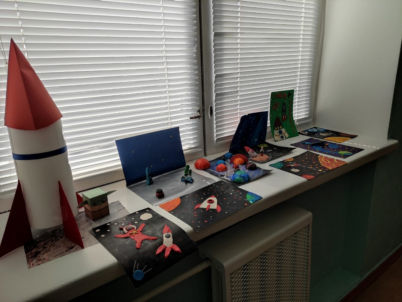 В 3 день, в ДЕНЬ КОСМОНАВТИКИ, учителем физики и математики Риммой Габдрашитовной в 6 классе прошел показ фильма про освоение космического пространства, и организована мини-выставка поделок, которые изготовили обучающиеся дома