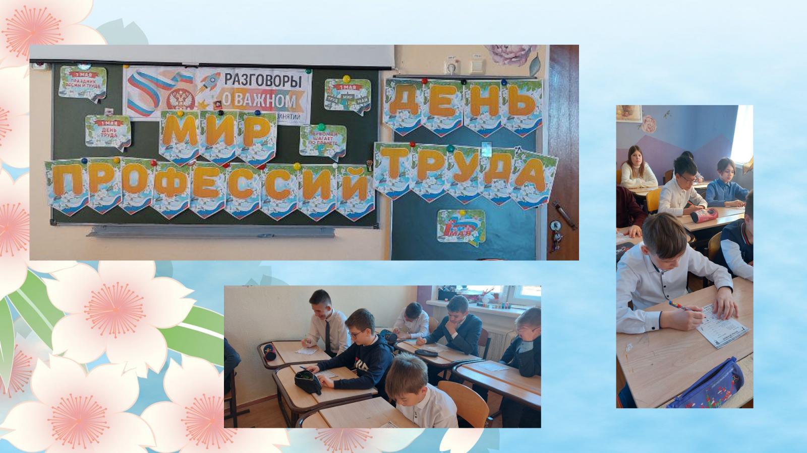 Занятия курса внеурочной деятельности "Разговоры о важном" прошли на тему «День труда. Мир профессий». Говорили о роли и высокой значимости труда в жизни страны. Раскрыли понятие «созидательного труда», его особенности. Обсуждали выбор профессии и способы, которые могут помочь выбрать правильный профессиональный путь, а также расширили представления о наиболее востребованных профессиях. Познакомились с людьми, влюбленными в свое дело. Узнали, что государственная награда Герой Труда Российской Федерации – самая почетная награда за особые трудовые заслуги перед государством. Пришли к выводу о том, что независимо от сферы деятельности и выбранной профессии, человек, который честно трудится, может стать гордостью всей страны, настоящим героем. В завершение занятия обсудили проект «Билет в будущее», который погружает детей и подростков в мир различных отраслей и профессий. В ходе занятий были использованы презентация, видеоролики, интерактивные задания.