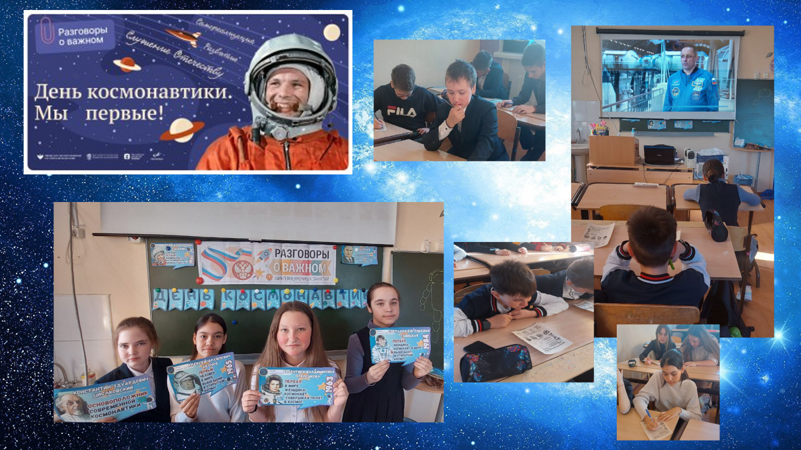 В рамках сегодняшнего занятия из цикла «Разговоры о важном» учащиеся узнали очень многое об истории освоения космоса. Вспомнили о первом запуске искусственного спутника Земли, о первом полёте человека в космос.