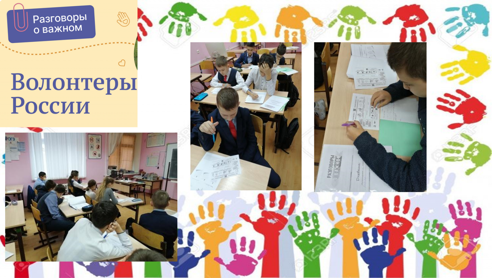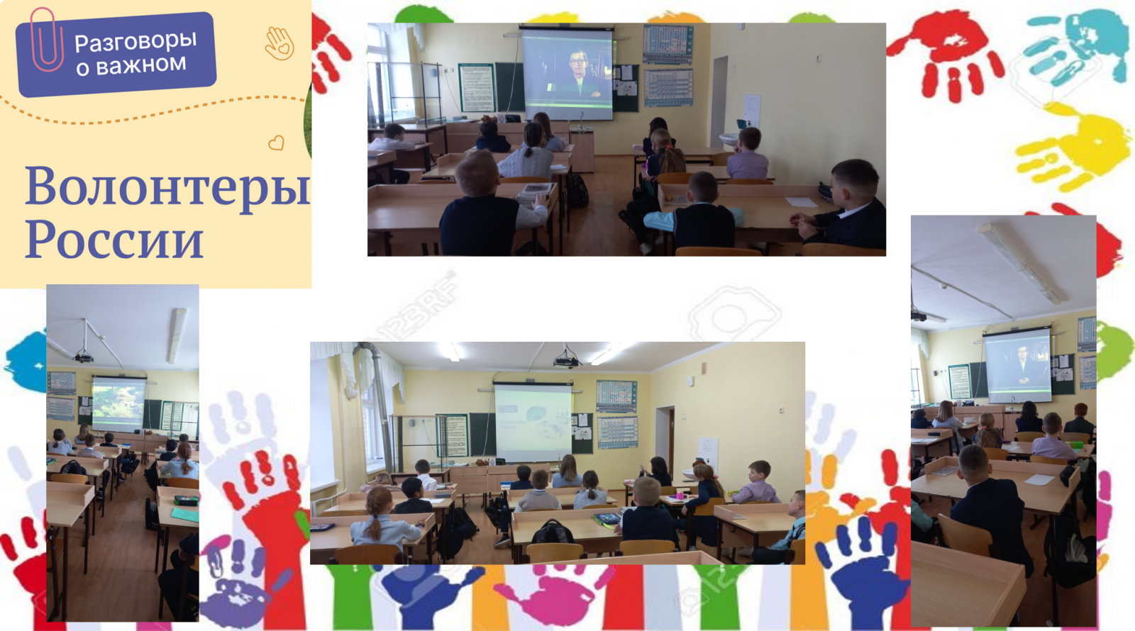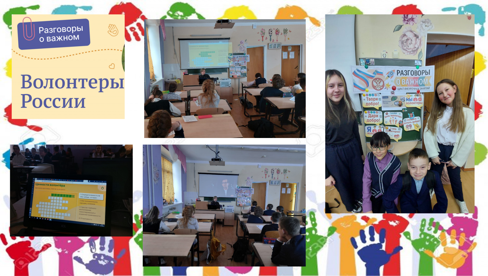 Цель внеурочного занятия: формирование представления о жизни как проявлении себя в различных видах волонтёрской деятельности, воспитание нравственных качеств личности (доброта, милосердие, сострадание, благородство, готовность прийти на помощь). Сегодняшний разговор о важном был посвящен людям, которые своими ежедневными делами делают наш мир добрее и счастливее. В России быть волонтером очень почетно. Государство придает волонтерству особое значение и оказывает всестороннюю поддержку.