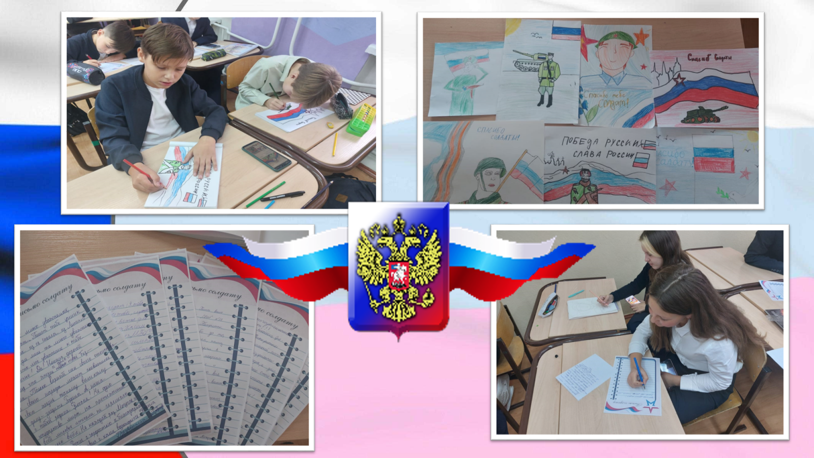 4 октября в нашей школе прошла акция в поддержку СВО "Письмо солдату". Учащиеся 6 класса написали очень теплые слова поддержки солдатам, которые сейчас находятся на поле боя и нарисовали яркие, красочные рисунки. Основная цель акции- военно-патриотическое воспитание детей и моральная поддержка солдат Российской армии.