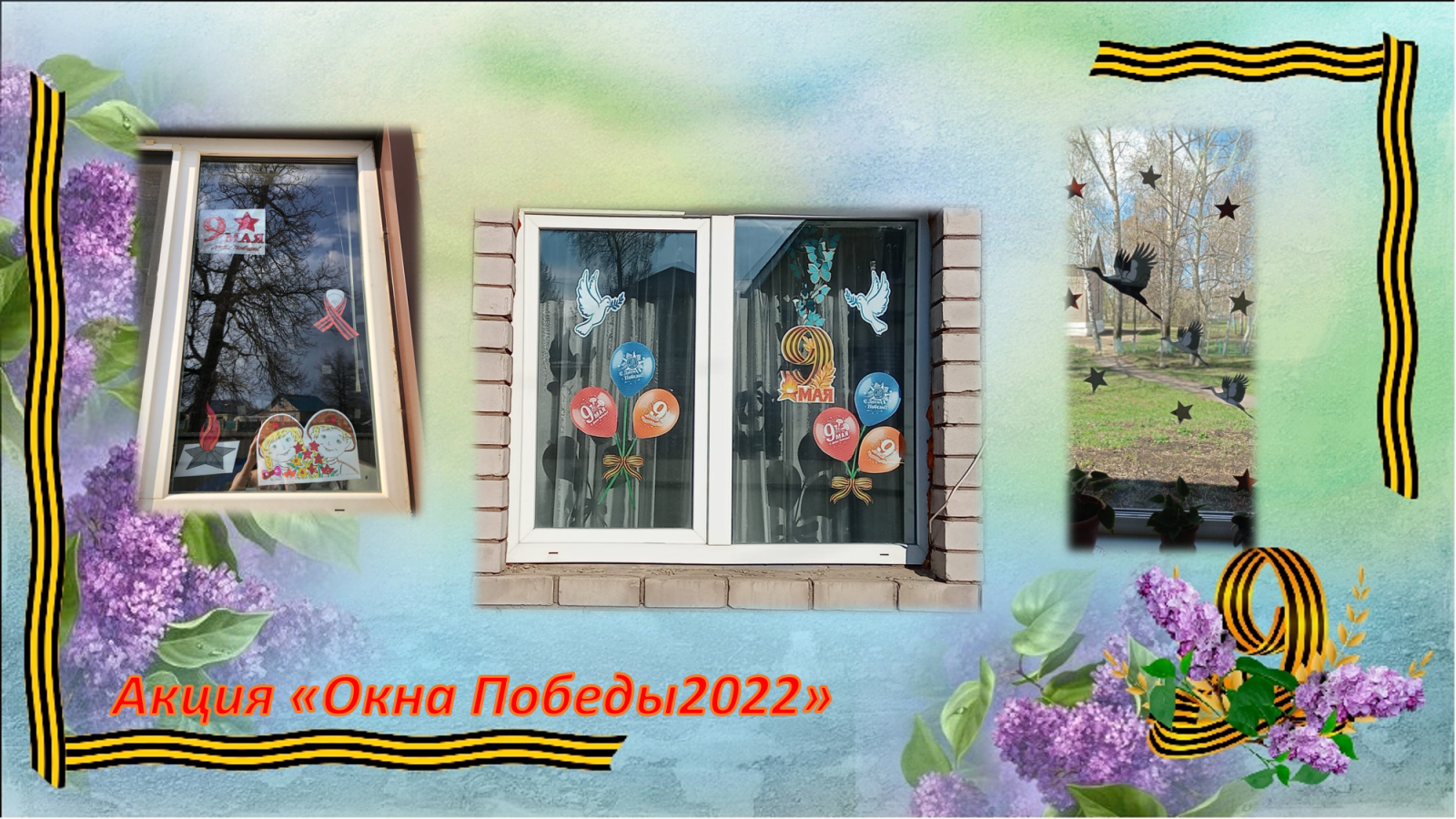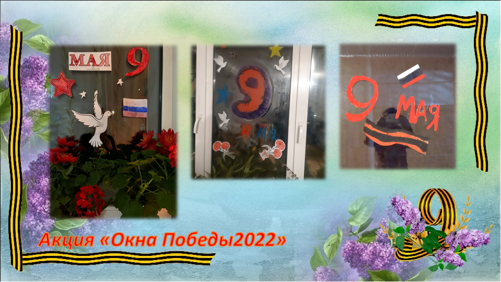 Всероссийская патриотическая акция «Окна Победы». Ее целью является создание атмосферы одного из самых важных праздников в России, передача молодому поколению традиций, выражение благодарности героям Великой Отечественной войны, почитание памяти об ушедших ветеранах.