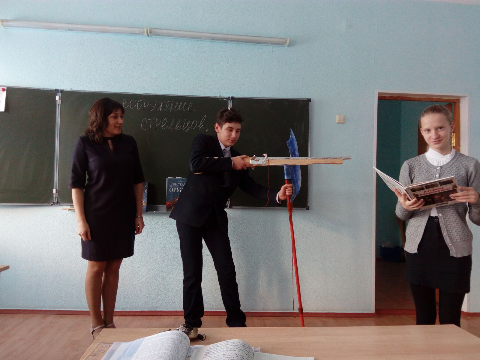 Гордость нашей школы -Романчук Никита, обладает многогранным талантом. Наряду с тем, что он стал призером муниципального этапа Всероссийской олимпиады школьников по истории среди учащихся 7 класса (Руководитель – учитель истории Г.Р.Миндрахманова), он увлекается историей оружейного дела. В рамках изучения темы внешней политики Ивана IV он с удовольствием собственноручно изготовил и рассказал о вооружении стрельцов. Ребятам было очень интересно.