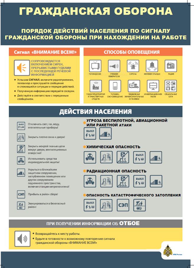 - основные способы защиты от опасностей, возникающих при военных конфликтах или вследствие этих конфликтов, а также при чрезвычайных ситуациях природного и техногенного характера (беспилотной, авиационной или ракетной атаке);