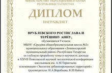 23-26 февраля в Казани проходила очная XVII Поволжская научная экологическая конференция школьников имени А.М.Терентьева. Ученики 9 Класса Врублевский Р. и Терешина А. Стали призерами в номинации глубокая проработка темы и научность доклада в секции «Экология урбанизированной территорий».