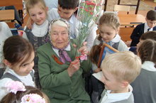 В преддверии празднования 73-ей годовщины Великой Победы ребята 1 б класса встретились с труженицей тыла, вдовой ветерана Великой Отечественной войны Татьяной Ивановной Милько. Она рассказала о тяжёлых военных годах, об эвакуации в Туркмению, о помощи раненым бойцам. В свои 93 года Татьяна Ивановна до мелочей помнит о годах лихолетья. Призвала первоклассников хорошо учиться, быть достойными своих прадедов, любить свою Родину.