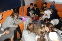 Дети работали со световыми волокнами. Рисовали на песке. Пескотерапия – это способ снятия внутреннего напряжения, повышение уверенности в себе, активизации настроения, положительного самочувствия, активизация тактильный чувствительности, гармонизация психоэмоционального здоровья. Учащиеся поделились положительными эмоциями, хорошим впечатлением.