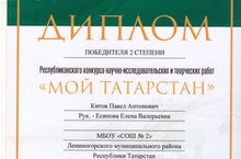 В ноябре проходил Республиканский конкурс научно-исследовательских и творческих работ «Мой Татарстан» в рамках реализации инновационного проекта «Наш Татарстан» (победителя XI Республиканского конкурса «Пятьдесят лучших инновационных идей для Республики Татарстан»), являющегося составной частью Общероссийского инновационного проекта «Моя Россия».