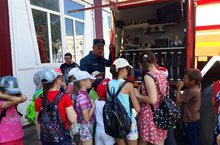 Сегодняшний день прошел под лозунгом «Это всем должно быть ясно, что с огнем шутить опасно!» После инструктажа, который провели воспитатели, дети ходили на экскурсию в Пожарную часть №11. Сотрудники ПЧ провели очень содержательную беседу о рабочих буднях пожарных, показали, как тренируются пожарные, дети сами под руководством сотрудников ПЧ раскатали пожарный рукав, попробовали регулировать напор воды, примеряли костюмы пожарных, посмотрели мультики о противопожарной безопасности дома, в лесу. Получили массу впечатлений! После обеда педагог- организатор провел развлекательное мероприятие «Однажды в лагере». Дети принимали активное участие в викторине «Игра-врунина», сами сочиняли интересные неправдоподобные истории, поиграли в игру-шумелку, рисовали с закрытыми глазами. Скучающих в лагере нет