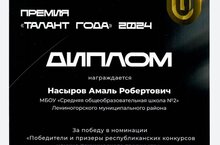 Премии приняли участие более 250 талантливых школьников. из более , чем 1500 соискателей учащийся 8Б класса Насыров Амаль стал победителем в номинации «Победители и призеры научно-технических конкурсов» и принял участие в церемонии награждения, был награжден дипломом.