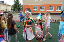 14 июля в пришкольном лагере "Ромашка" прошёл День Индейцев - традиционный яркий и весёлый праздник, проведению которого предшествовала тщательная подготовка. Отряды в этот день стали индейскими племенами со своей боевой раскраской, оригинальными костюмами, именами-кличками, соответствующими поступкам и характеру, и, конечно, тотемом. Ребята были разделены на два племени: "Апачи" и "Аропаке". Отряды дали клятву индейца, изучили индейский язык, и прошли непростые испытания на силу, выносливость, храбрость и смекалку.