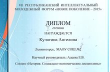 11.12. состоялся VII Республиканский интеллектуальный молодежный форум «Новоепоколение -2015» на котором учащиеся 11А класса Кулагина Ангелина