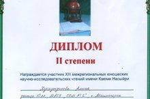 23 марта в Казани на базе русско-татарской школы №81 прошли XIII Межрегиональные юношеские научно-исследовательские чтения имени Каюма Насыри. Всего оргкомитету было представлено 950 исследовательских работ, из них во второй тур прошли 342. На чтениях работали 17 секций. Ученица 10 класса нашей школы Хуснутдинова Алина представляла свою работу «Праздники народов Поволжья» в секции «Краеведение» и награждена Дипломом II степени. Администрация школы поздравляет Хуснутдинову Алину и ее руководителей - учителей татарского языка и литературы - Губайдуллину М.З., Салихову Р.Р. с победой!