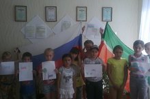 11 июня отряды ходили в Детскую библиотеку. Сотрудниками библиотеки было проведено мероприятие «Символы Российской Федерации и Республики Татарстан»: рассказывали о гербе, флаге РФ и РТ, прослушали гимны, просмотрели презентацию о чудесах России: о Соборе Василия Блаженного, про озеро Байкал, фонтаны Петергофа.