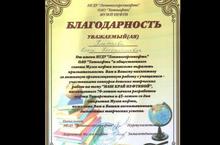НГДУ «Лениногорскнефть» ОАО «Татнефть» и общественный совет Музея нефти выражает признательность директору Платоновой Ольге Константиновне и коллективу школы за активную организационную работу с учащимися – участниками конкурса детских творческих работ на тему «НАШ КРАЙ НЕФТЯНОЙ», посвященного 70-летию начала разработки нефти Татарстана и 45-летию со дня открытия Музея нефти.