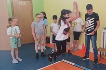 Воспитанники лагеря проходили такие испытание как: сгибание/разгибание рук в упоре лежа, прыжок в длину с места толчком двумя ногами, поднимание туловища из положения лежа, метание мяча , наклон вперёд (на гибкость). Судьи оценивали уровень подготовленности детей и следили за правильностью выполнения испытаний. Ребята активно принимали участие, проходили испытания с большим энтузиазмом и показали хорошие результаты.