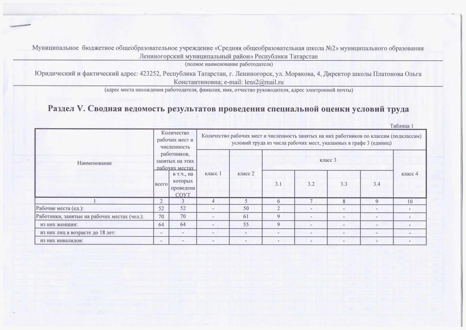 - Результаты специальной оценки условия труда