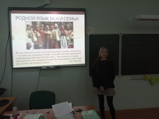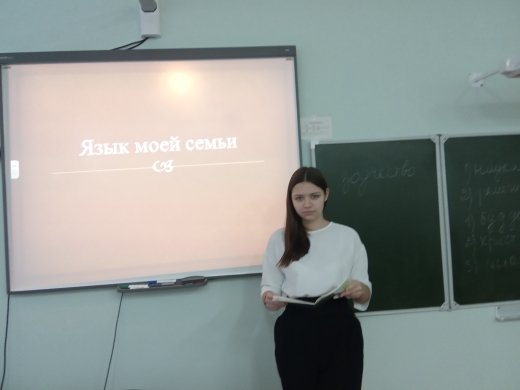 Опубликовано: 25.01.2021В рамках месячника, посвященного Международному дню родного языка, 23 и 25 января в нашей школе прошла защита проектов на тему «Язык моей семьи». В этом мероприятии участвовали ученики 6Б и 8Б классов. Ученики представили свои проекты в формате презентаций, сочинений, стенгазет, рисунков, стихотворений.