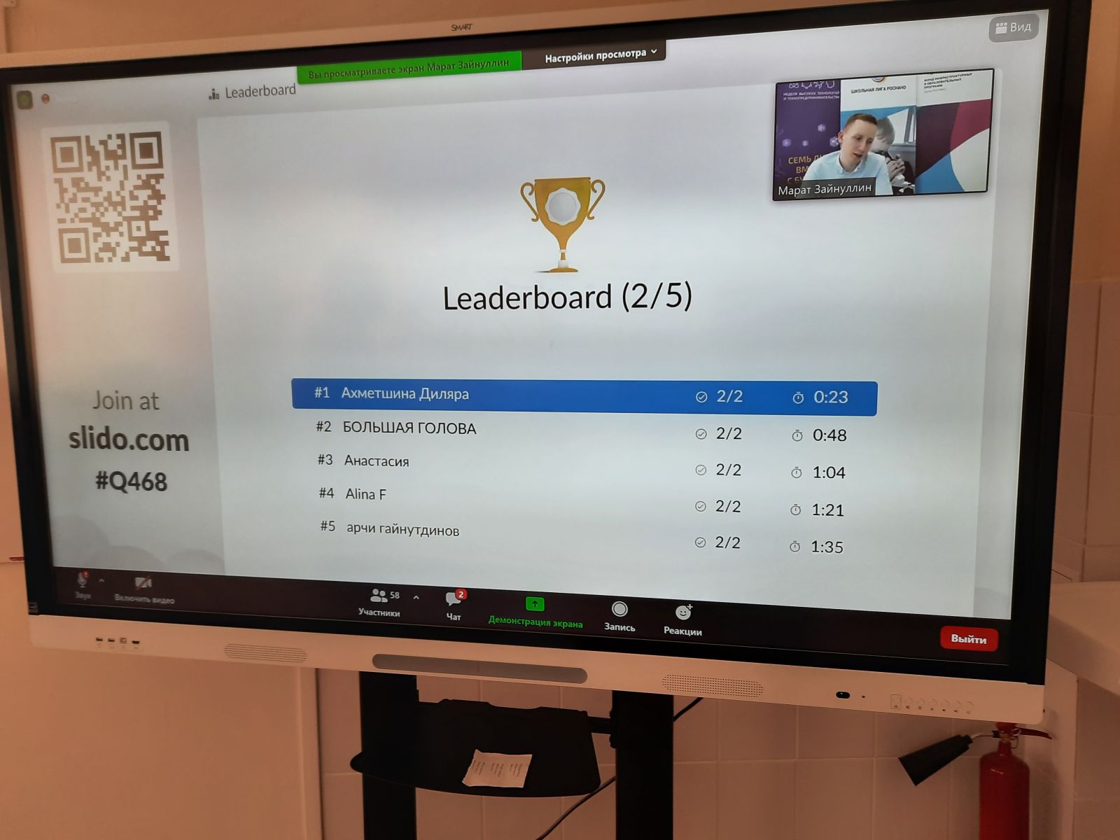 Опубликовано: 17.03.2021Вчера, 16 марта, Школьная лига РОСНАНО в рамках недели высоких технологии и технопредпринимательсва проводил Онлайн игру «По лабиринтам естественных наук в наномир». В ходе онлайн игры учащиеся ознакомились через зумм с опытами , демонстрациями мини лаборатории «Наночемодан 2.0» рассматривали области их практического применения, вопросы задавали по зуму и в течение 2 минут учащиеся отвечали на вопросы уже на другом сайте Slido.com Поздравляем победителя Онлайн игры «По лабиринтам естественных наук в наномир» Ахметшину Диляру (учитель Санатуллина Гульнур Ильясовна), а также призёров Щетинину Анастасию, Федотову Алину ( учитель Хусаенова Гульнур Айратовна).