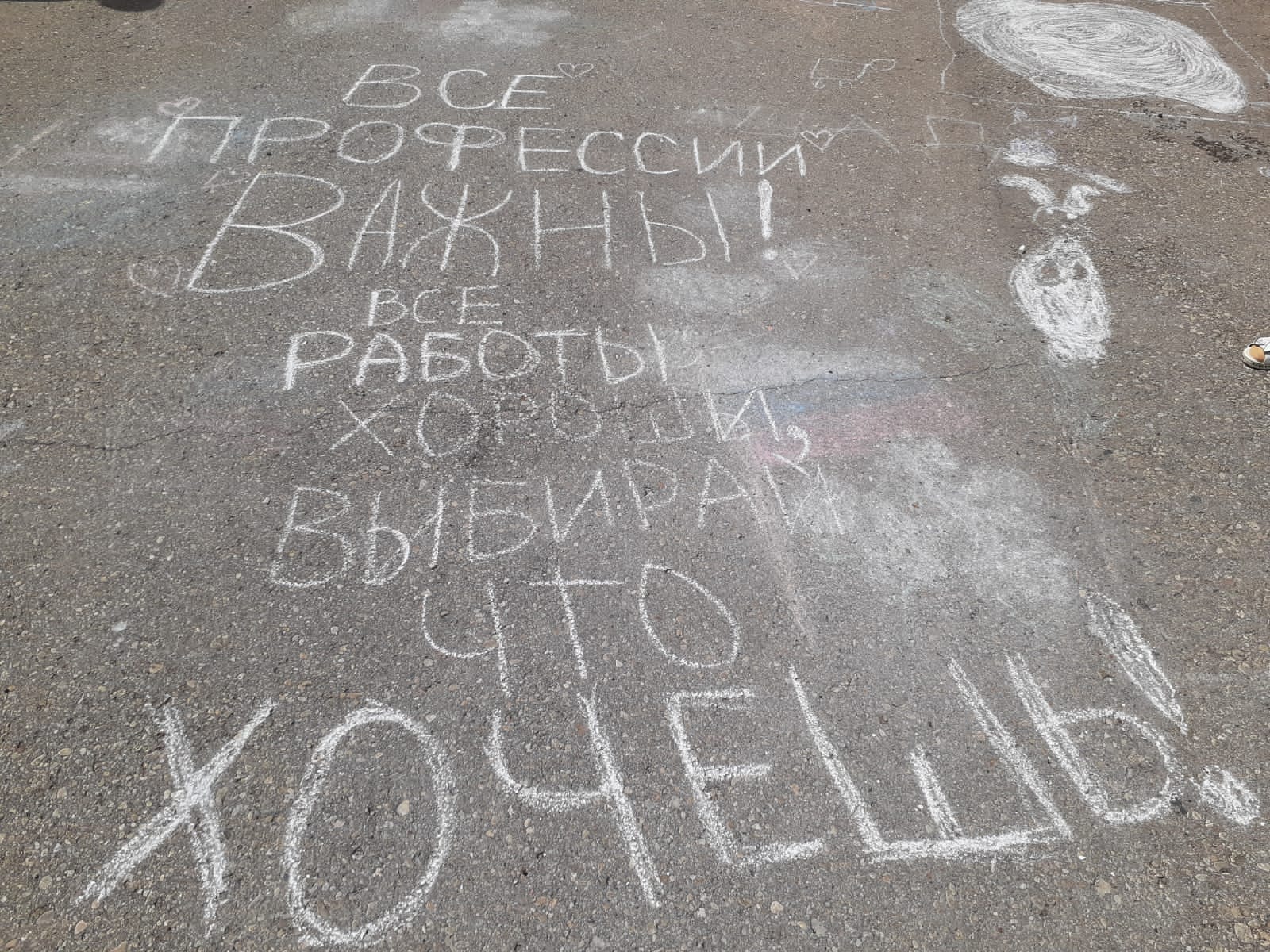 Опубликовано: 19.06.202218 июня в пришкольном лагере "Ромашка" прошел конкурс рисунков на асфальте на тему "Моя будущая профессия". "Кем ты хочешь быть,когда вырастешь?", - пожалуй,этот вопрос входит в пятерку самых популярных вопросов,которые взрослые любят задавать маленьким детям. "Все профессии важны,все профессии нужны!" Врач,учитель,юрист,ученый,артист... " А кем стану Я?"...На этот непростой вопрос ребята нашего пришкольного лагеря отвечали в своих рисунках...