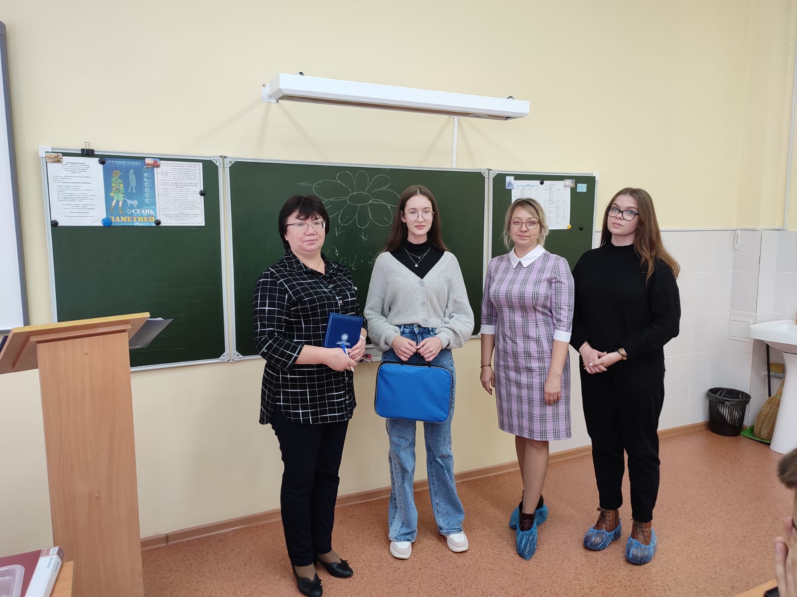 Опубликовано: 11.10.2022Сегодня ведущим специалистом-экспертом КИО АТО Госалкогольинспекции РТ Платоновой Натальей Владимировной и ведущим специалистом отдела экономики Шатериной Александрой Сергеевной поощрили ученика 10 класса Мустаеву Ксению памятными подарками, она прошла на второй тур Олимпиады по защите прав потребителей. Кроме того за подготовку ученика поощрен учитель обществознания Бурдина Ирина Владимировна
