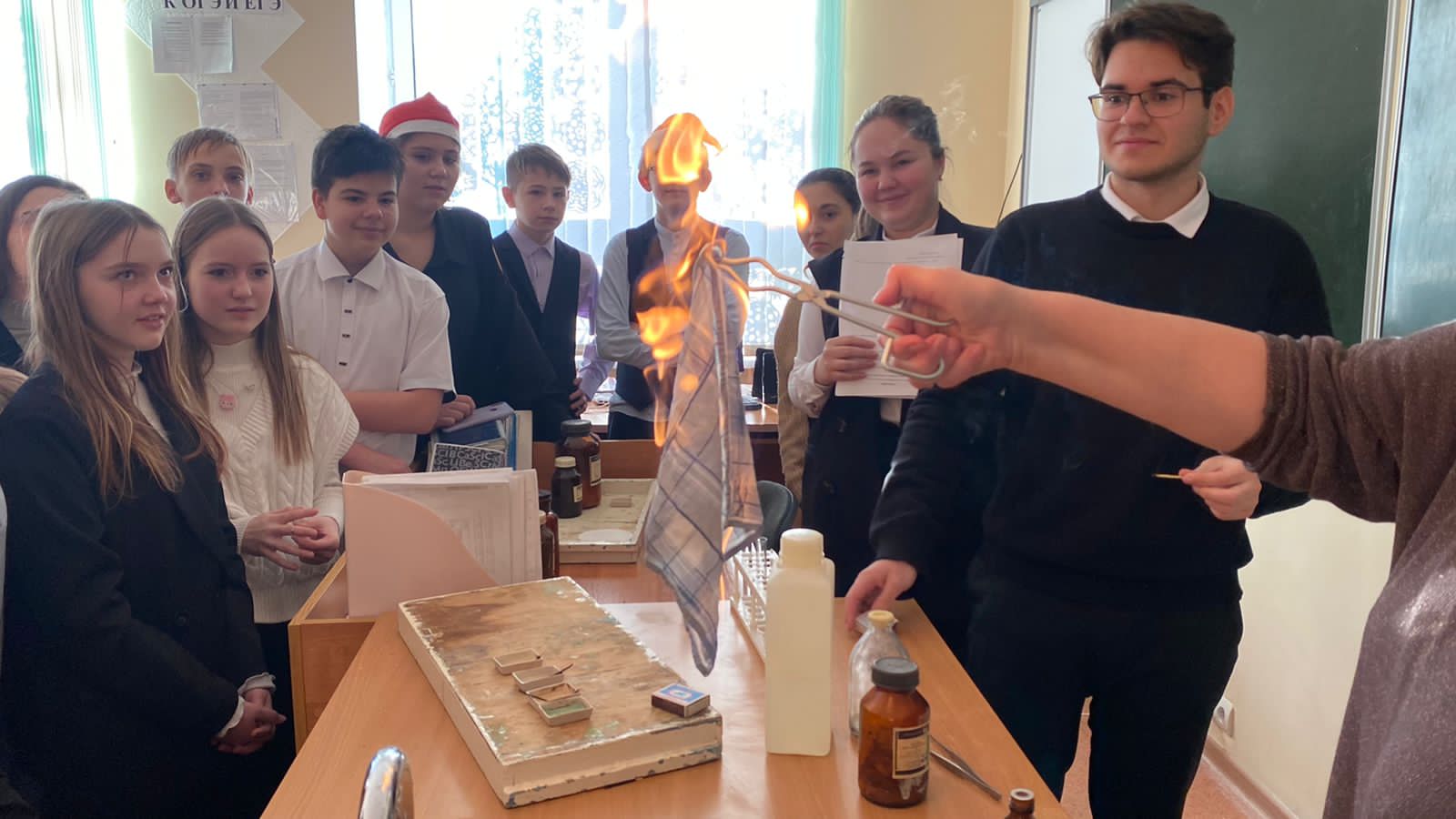 Опубликовано: 14.12.202214 декабря учащиеся 11 классов провели замечательный час "Химия чудес"для учащихся 7 классов. Выпускники показывали ребятам опыты, соблюдая все меры безопасности.