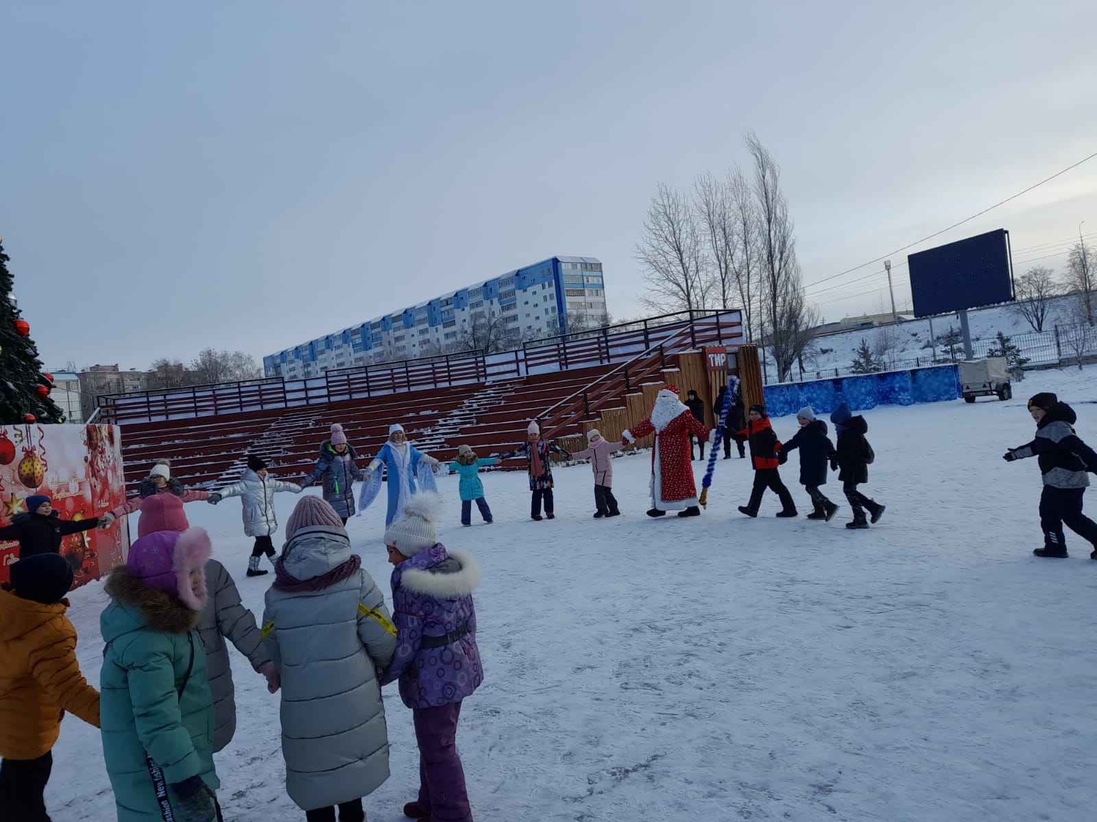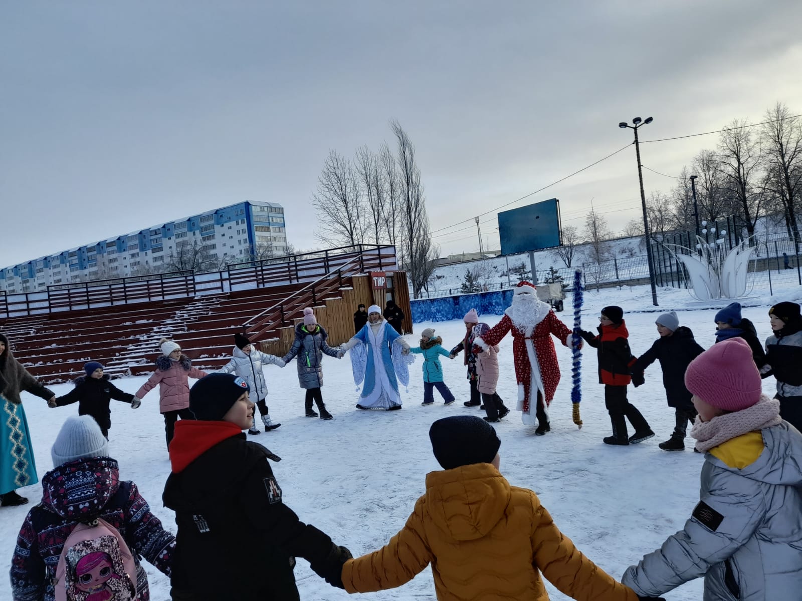 После завтрака дети отправились в парк «Юбилейный», где с Дедом Морозом водили хоровод, пели песни, танцевали, активно участвовали в предложенных играх и конкурсах..