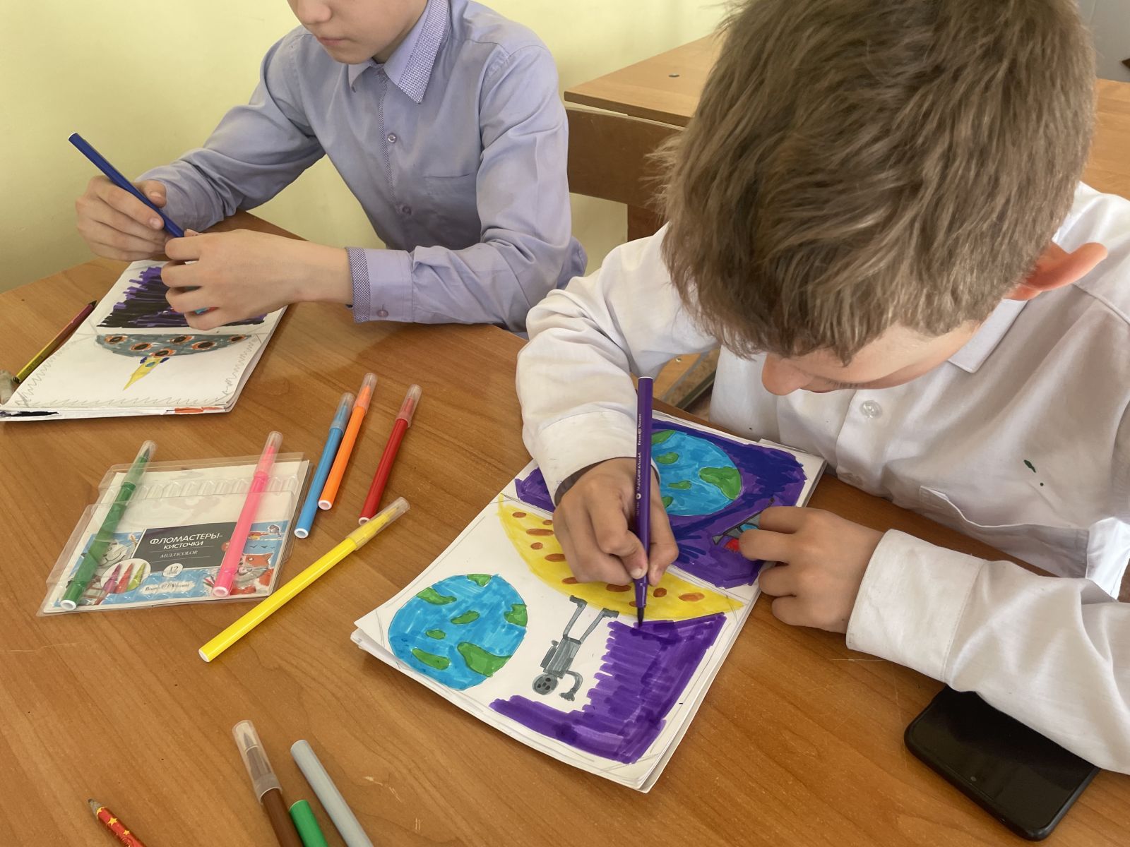 Под таким девизом прошел урок в рамках недели технологии, изобразительного искусства и географии на уроке изобразительного искусства в 6 классе. Ребята разработали почтовую марку и изобразили космический пейзаж. Полет стал увлекательным и разнообразным .