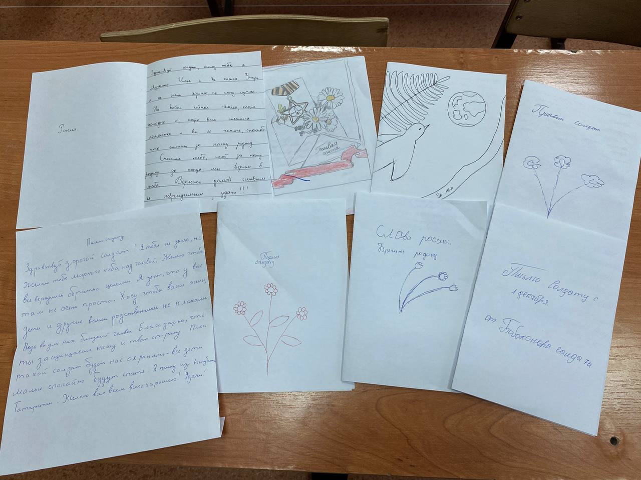 Именно сегодня ученики школы совместно с советником директора по воспитанию, Макаровой К.Н.,написали письма бойцам находящимся на СВО, защищающим нашу родину.