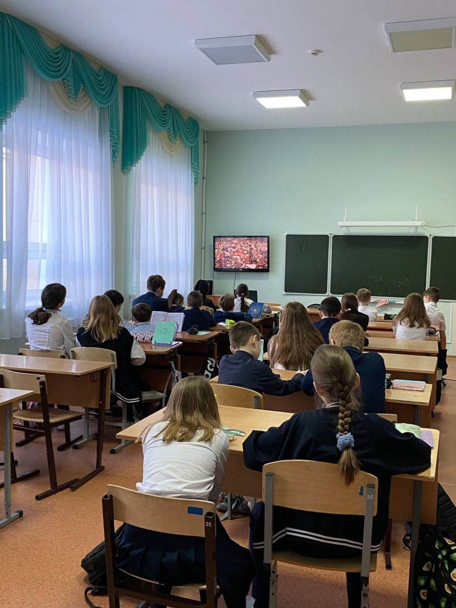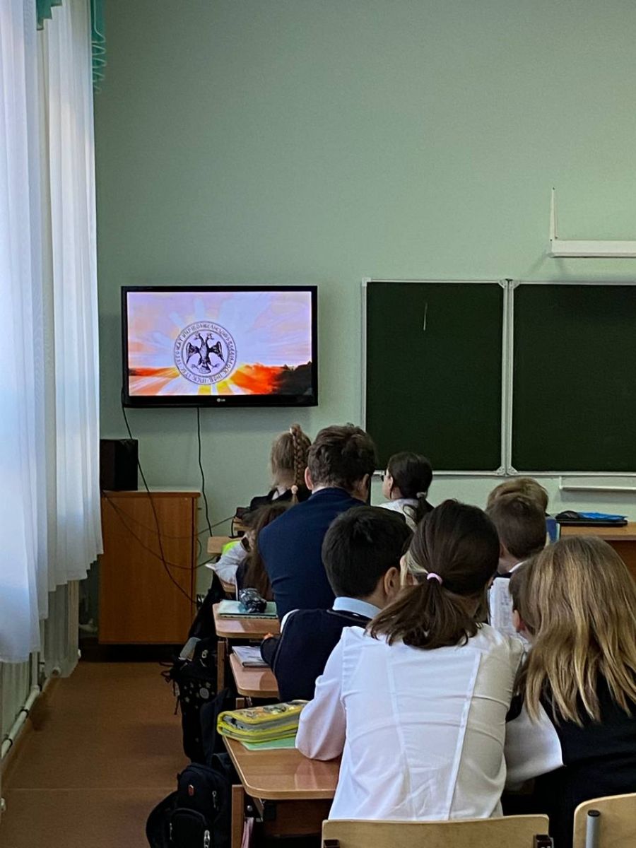 Учащиеся 5-6 классов посмотрели фильм об истории создания герба, его символике, значении и связи с историей России, после отвечали на вопросы по просмотренному материалу.