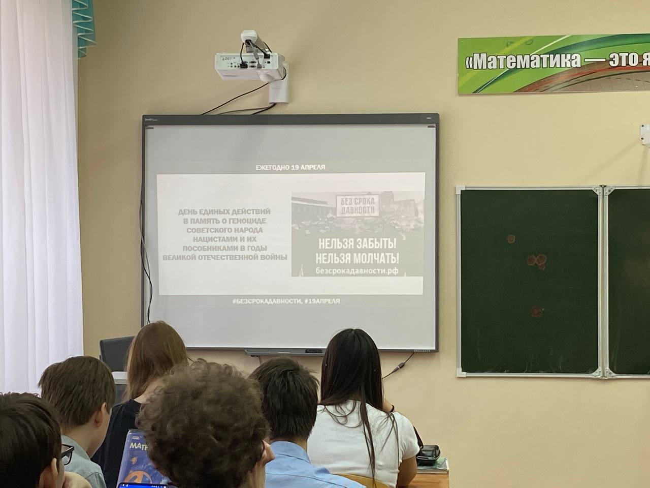 В нашей школе советник директора по воспитанию провела мероприятие «Без срока давности», приуроченное ко Дню памяти о геноциде советского народа нацистами и их пособниками в годы Великой Отечественной войны.