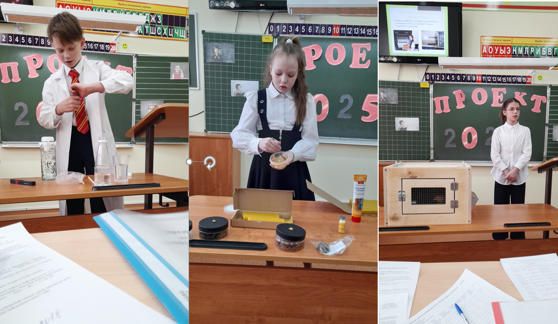 обучающиеся 4 в класса. Во время защиты проектов в 4 в классе учащиеся