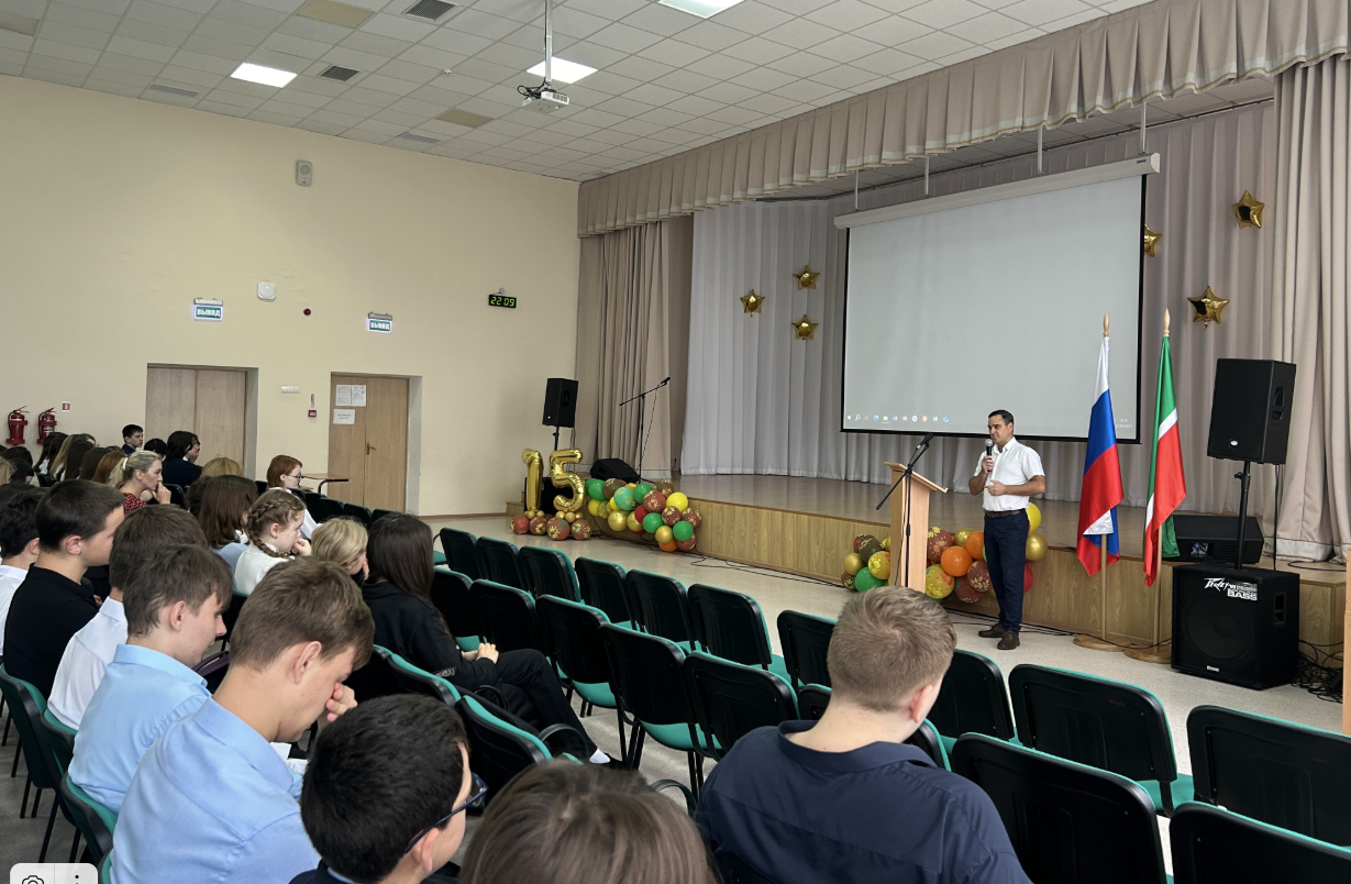 Опубликовано: 22.09.2025Сегодня начальник отдела кадров РРНУ Исхаков М.Р. Провел встречу для учащихся 9-11 классов по профориентации, на которой рассказал о целевом обучении, об условиях поступления на работу и о сотрудничестве с Канашским техникумом.