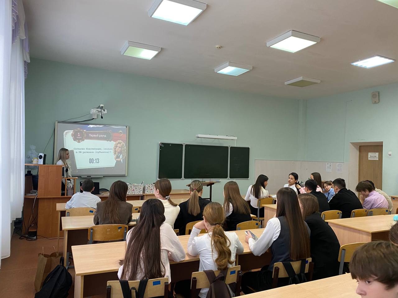 Опубликовано: 02.12.2025Советник директора провела увлекательную викторину «Конституционные тайны»в преддверии Дня Конституции. Учащиеся активно участвовали в познавательной игре, проверяя свои знания основ российского права и знакомясь с историей принятия главного закона страны. Мероприятие прошло в теплой атмосфере, ученики смогли проявить эрудицию и углубили понимание принципов демократии и прав каждого гражданина России.
