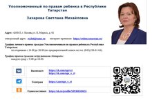 Уполномоченный по правам ребенка в Республике Татарстан - Захарова Светлана Михайловна 07.10.2025