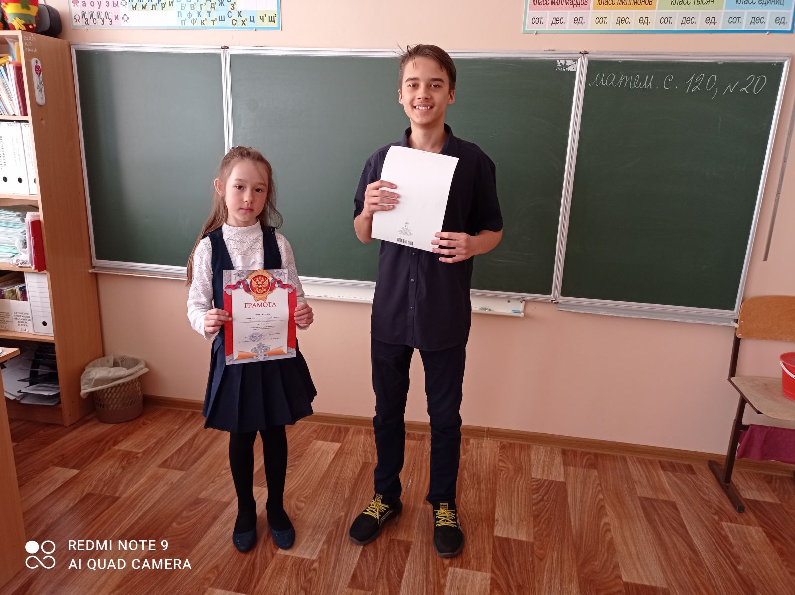 Ученики 3 класса Шайдуллин Т. и Суслова М. приняли участие в Межрегиональной научно - практической конференции учащихся начальных классов «Хочу всё знать». Они защитили свои работы по темам: «Дворовые игры моих родителей», «Далеко ли от нас солнце?» -