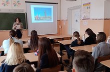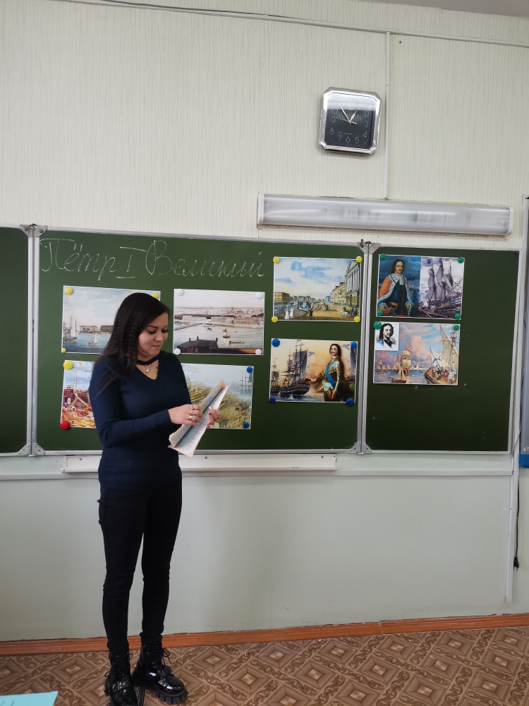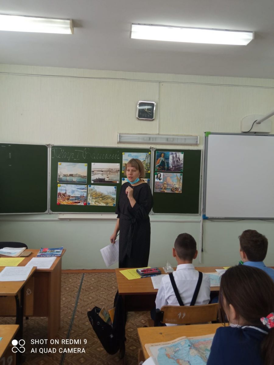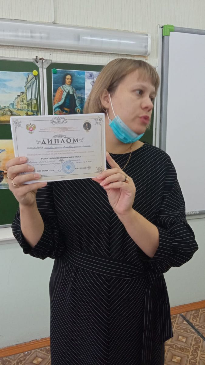 В рамках Всероссийского Петровского урока (Письмо МОиН РТ N316 от 28.05.2021) Н. Г. Кузнецова провела в 5 классе в нашей школе урок истории (внеклассное мероприятие) . Занятие было познавательным, с яркими иллюстрациями по теме, с привлечением детей к разным видам работы: в парах, индивидуально, фронтально. Учащиеся складывали пазлы, чтобы узнать тему занятия, работали с картой, читали текст , выделяя основную его мысль , на этапе закрепления изученного материала восстанавливали неполный исторический текст с помощью слов для справок. А в конце учитель провела рефлексию. Каждый ребенок высказал свое отношение к уроку, поделился впечатлениями о новом материале. Хочется высказать большую благодарность учителю истории за прекрасный урок, позитивный настрой и богатый иллюстративный материал. В конце урока каждый учащийся получил диплом, подтверждающий участие на Всероссийском Петровском уроке. Мероприятие было организованно совместно со школьным библиотекарем Андреевой Л. М. -