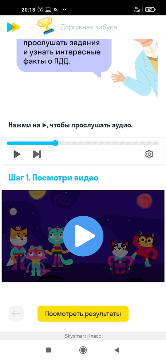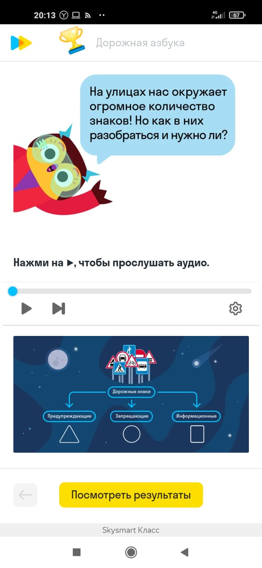 17 сентября в рамках дня здоровья, классный руководитель 3 класса Мухутдинова Р.Ф. для учащихся организовала онлайн мероприятие на SKYSMART платформе по теме «Дорожная азбука». Учащиеся помогали Максу и его друзьям правильно переходить дорогу, учили дорожные знаки и запоминали, как себя вести в транспорте.